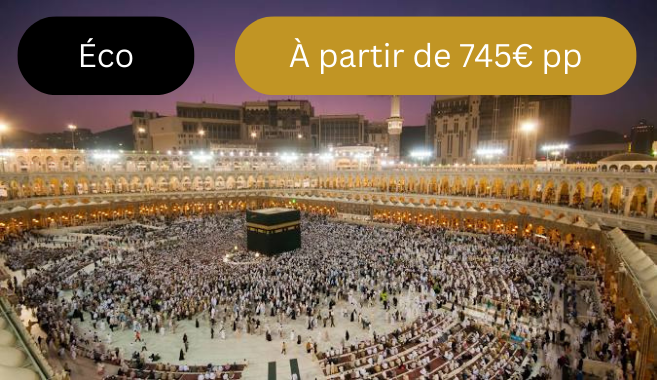Omra économique pour 2 personnes de 9 jours / 8 nuits, du 10 au 18 Janvier 2026 au départ de Paris, à partir de 745€ par personne ! ✈️ Possibilité de départs de Lyon, Toulouse, Lille, Nantes, Marseille, et Bruxelles.