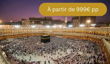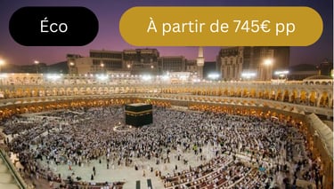 Découvrez nos différentes formules de Omra pensées pour s’adapter à tous les besoins. Choisissez l’option qui correspond le mieux à votre budget, à votre confort et à votre manière de voyager, et personnalisez votre expérience par la suite en quelques clics.