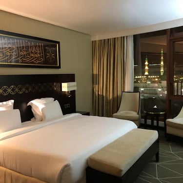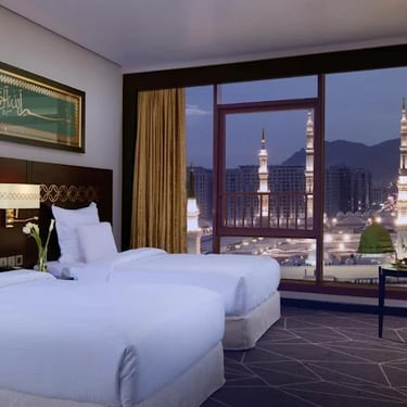 Dans des hôtel 5★ très bien situé dans les tours de Makkah (Al Abraj), à seulement 2 minutes à pied du Masjid Al Haram 🕋, et du Masjid An Nabawi aussi. Des emplacements collés aux mosquées sacrées pour une Omra en toute tranquillité.